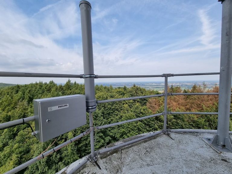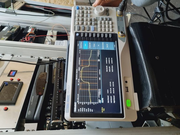 Das Endstufenmodul für die Digitalausgabe auf 1291 MHz in DVB-S ist nun direkt unter der Antenne montiert Die 50m Cellflex 7/8″ Zuleitung ist ersetzt worden durch 3m Ecoflex 10